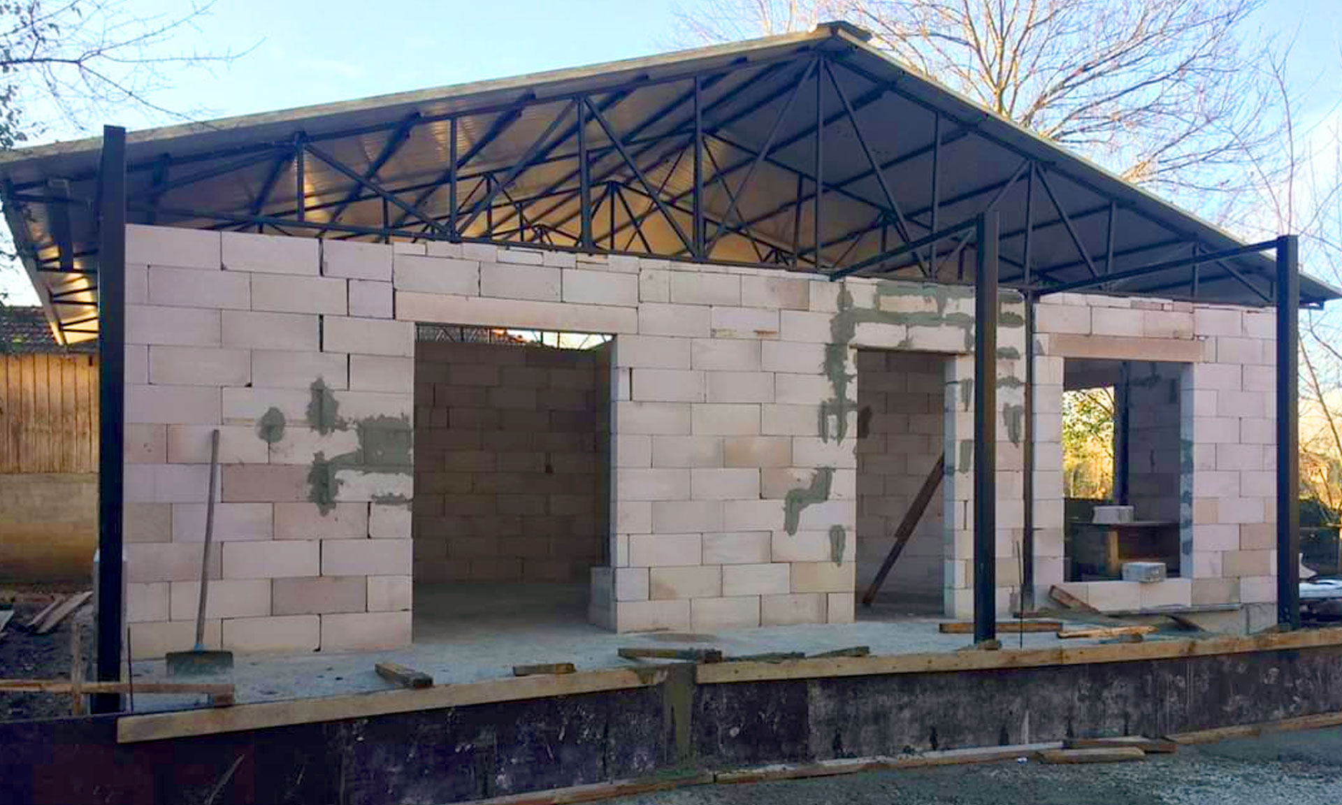 yarı agır çelik(2 katlı) yarı kutu prafil (1 katlı)yardımıyla ytong duvar betopan (Fibercement levha)iç cephede alcıpan levha ile yapılan binalardır